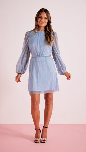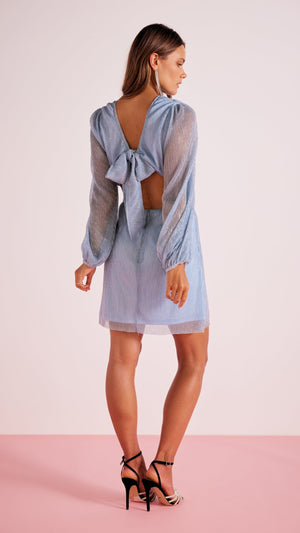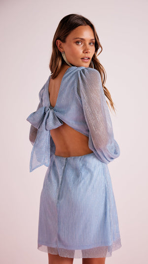 Astrid Plisse Tie Back Mini Dress Blue - Final Sale