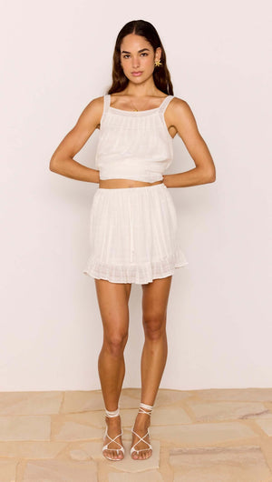 Lace Detail White Cotton Mini Skirt