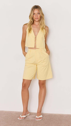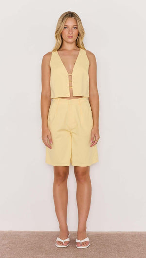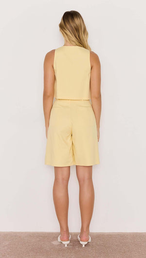 Butter Yellow Linen Crop Top With Bead Detail